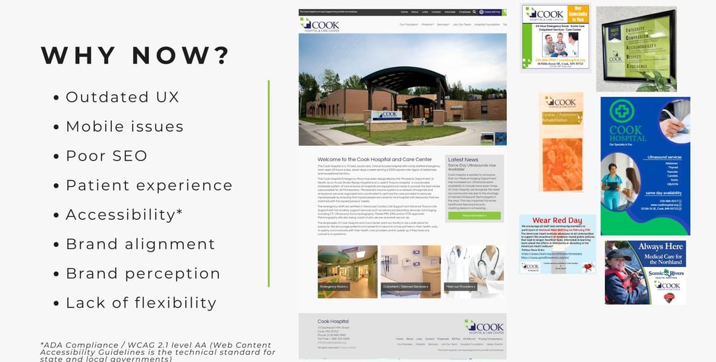 As of early 2025 when I began this project, there was no cohesive brand system in place. Print and digital marketing pieces were created without a shared framework, delivering a disorganized, fragmented, series of disconnected messages.